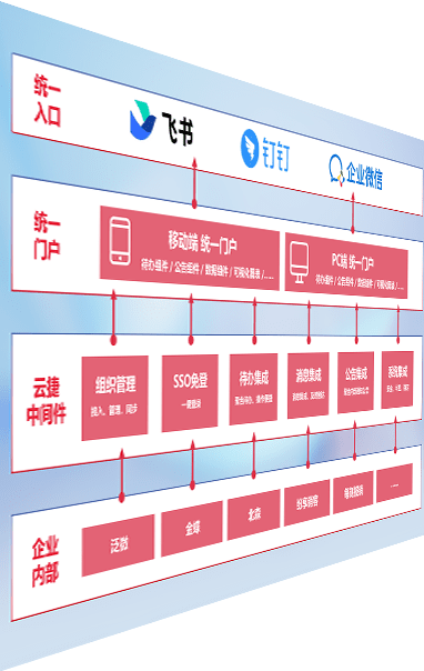 对协作平台提供支持服务,,,,支持企业应用与协作平台对接,,包含组织同步、、、消息集成、、、待办集成等。。。。支持目前主流的协作平台:钉钉、、、企微和飞书。。。